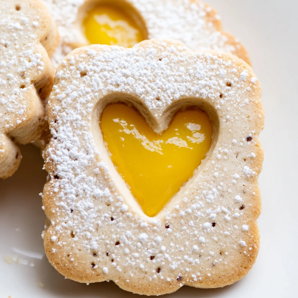 These delicate almond shortbread cookies feature a vibrant Meyer lemon curd filling, offering a bright, fresh take on the traditional Austrian Linzer. The nutty, cinnamon-spiced dough provides the perfect buttery backdrop for the tangy, creamy lemon center. Each sandwich cookie is dusted with powdered sugar for an elegant finish that's ideal for afternoon tea or dessert gatherings.