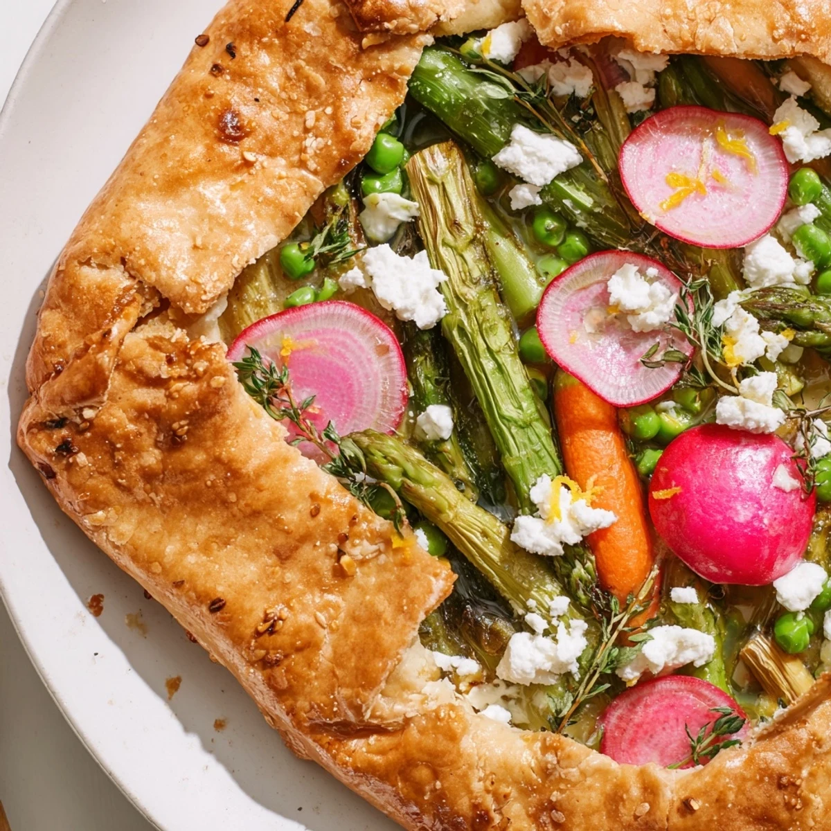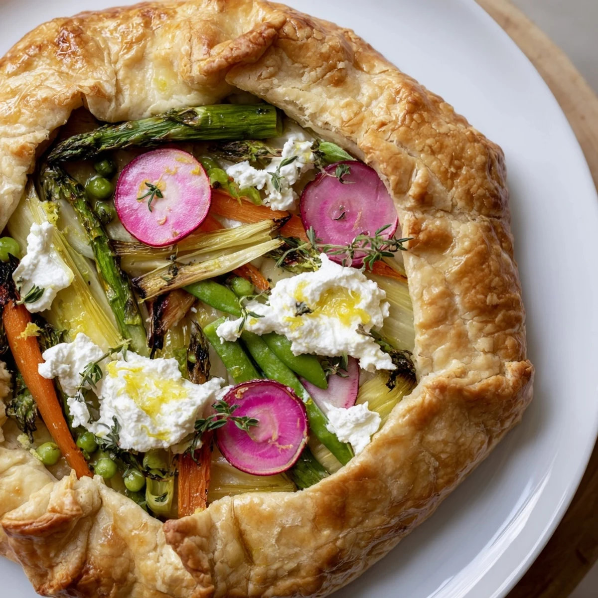 This rustic galette showcases fresh spring vegetables like asparagus, radishes, and sugar snap peas, combined with creamy goat cheese for a delightful, savory experience. The flaky pastry crust is buttery and tender, folding gently around a colorful medley sautéed in olive oil and seasoned with thyme and lemon zest. Ideal for brunch or a light dinner, this dish pairs wonderfully with crisp white wines. Preparation includes making the pastry, sautéing vegetables until just tender, arranging ingredients on rolled-out dough, and baking until golden.